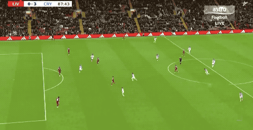 上半场结束,利物浦两球落后。下半场开始后,雨越下越大,利物浦的进攻毫无起色,第66分钟,斯洛特大手一挥,甚至换下了罗伯逊和麦卡利斯特,继续换上小将,场上的11人中,只有科尔克兹一名主力。